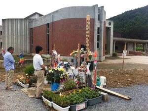 盛岡から東に車で移動し、陸中海岸の宮古市田老地区からスタートして南下を続け、山田町、大槌町、釜石市、大船渡市、陸前高田市、気仙沼市、南三陸町、石巻市(石巻市街他、雄勝町、大川小学校など)と順に視察し、仙台に戻りました。規模の大小はあるものの、どこでも既にガレキの仕分け・集積は大方済んでおりましたが、同時に、まだまだおびただしい数の家々が当時のまま放置され、人影はどこも疎らでした。一見、海岸も見えない内陸部と思しき地区でも、二階の窓が無くなっている住宅が多数残り、津波はここまで来たのか、と愕然とします。堤防や道路など破壊されたインフラや、陸に乗り上げたタンカー・漁船もそのまま。しかし、その一方で、道路の測量や工事をされている方々、仮設住宅では夏のイベントに盛り上がる被災者の方々、ようやく真新しい仮設住宅に入れて笑顔を見せる若いご夫婦、そして最近漁を再開させることができて活気が少しだけ戻ってきた気仙沼漁港の漁師や漁港関係者の方々などにお会いし、安心と希望も感じました。