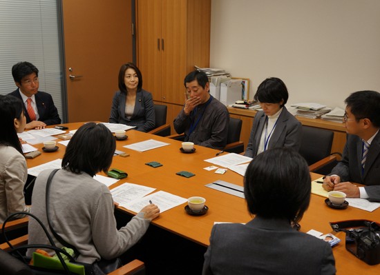 民主党福島復興再生プロジェクトチームに設けられた子ども・被災者支援ワーキングチーム座長として、事務局長の徳永エリ参議院議員とともに、子ども・被災者支援法市民会議の皆様と意見交換を行いました。